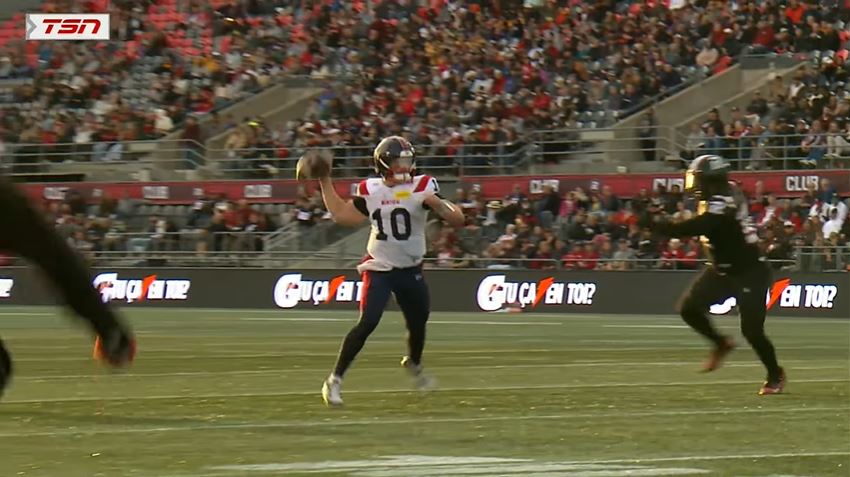 Montreal’s defense quickly got Ottawa off the field, including defensive lineman Mustafa Johnson sacking Tyrie Adams for an 11-yard loss. Montreal had the ball on the 36-yard line. Davis Alexander began the drive by throwing a 26-yard pass to Tyler Snead.