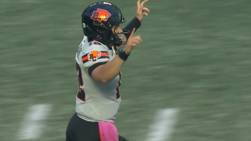 Later, B.C. had the ball on the 37-yard line. Nathan Rourke threw five consecutive passes for 66 yards to the seven-yard line. On the next play, Saskatchewan brought pressure. Rourke scrambled out of the pocket before tossing the ball in the end zone.