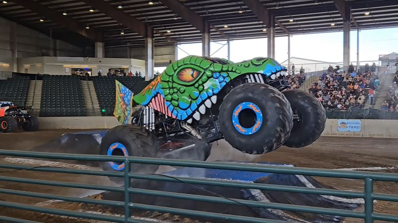 The Monster Truck Wars visited the Lone Star Expo Center in Conroe, Texas, featuring qualifying, racing, and freestyle. The trucks that competed in the show were Outlaw, Shark Attack, T-Rex, and Sheriff.