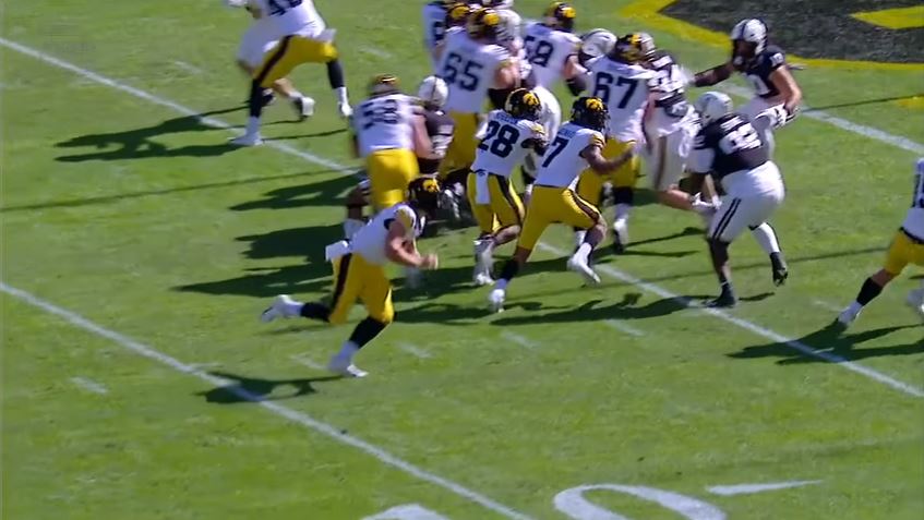 Iowa’s offense had 379 yards (212 yards passing, 167 yards rushing), 19 first downs, and the team was penalized five times for 53 yards. Quarterback Mark Gronowski completed 16 of 22 passes (72%) for 212 yards, two touchdowns, one interception, 10 carries for 54 yards, and one rushing touchdown.