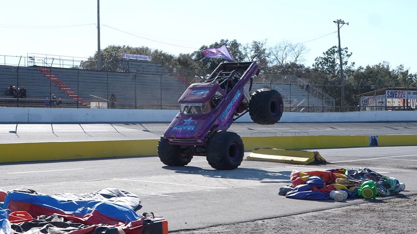 The All-Star Monster Truck Tour visited the Five Flags Speedway in Pensacola, Florida, featuring the best trick competition and freestyle. The trucks that competed in the show were Kraken, Miss Fire, High Tide, Lil’ Miss Madness, and Rat Attack.