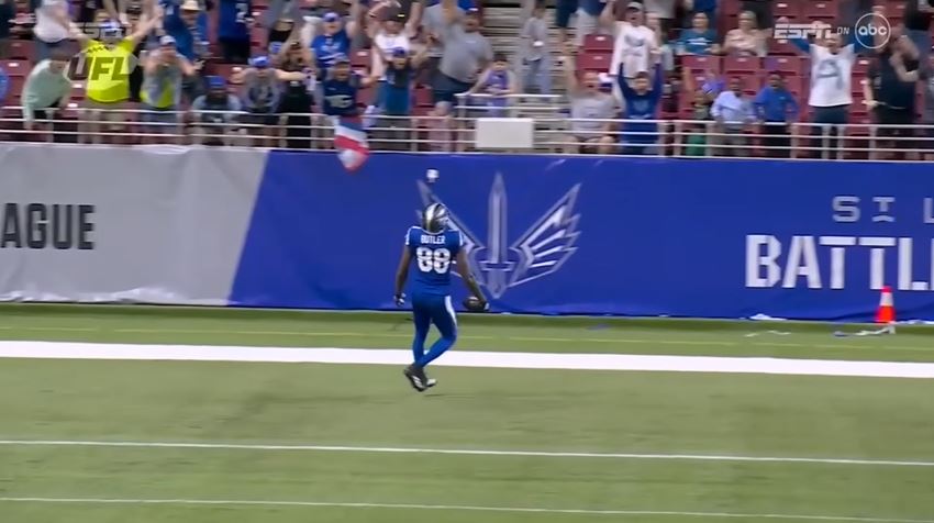 St. Louis had the ball on the 31-yard line. On the third play, quarterback Harrison Frost threw the ball right into the hands of Hakeem Butler for a 64-yard touchdown. The Battlehawks trailed the Stallions 30-27 to conclude a two-play drive for 69 yards.