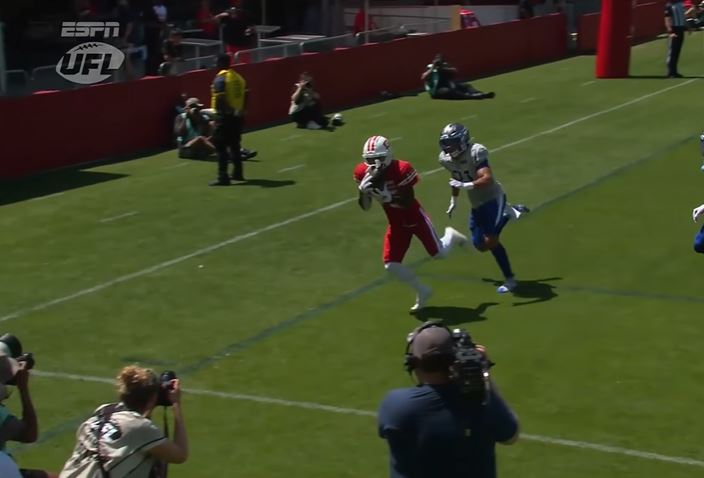 In the first quarter, St. Louis moved the ball to the 33-yard line before kicker Tucker McCann made a 51-yard field goal to put the Battlehawks up 3-0. Later, D.C.’s offense moved the ball to the 14-yard line. On the next play, quarterback Jordan Ta’amu threw a 14-yard touchdown pass to Keke Coutee to give the Defenders a 7-3 lead heading into the second quarter. The drive went 11 plays for 72 yards.